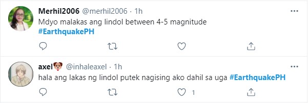 Intensity 4 was felt in Capalonga, Camarines Norte, Intensity 2 in Goa and Naga City, Camarines Sur; Calauag, Quezon Province; and Intensity 1 was recorded in Cainta, Rizal.
