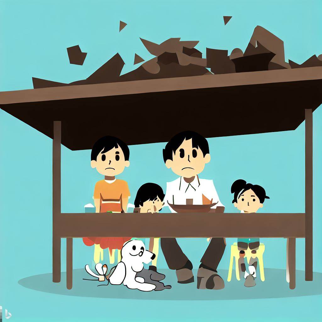 - Teach your family members about earthquake safety procedures, including “Drop, Cover, and Hold On.”